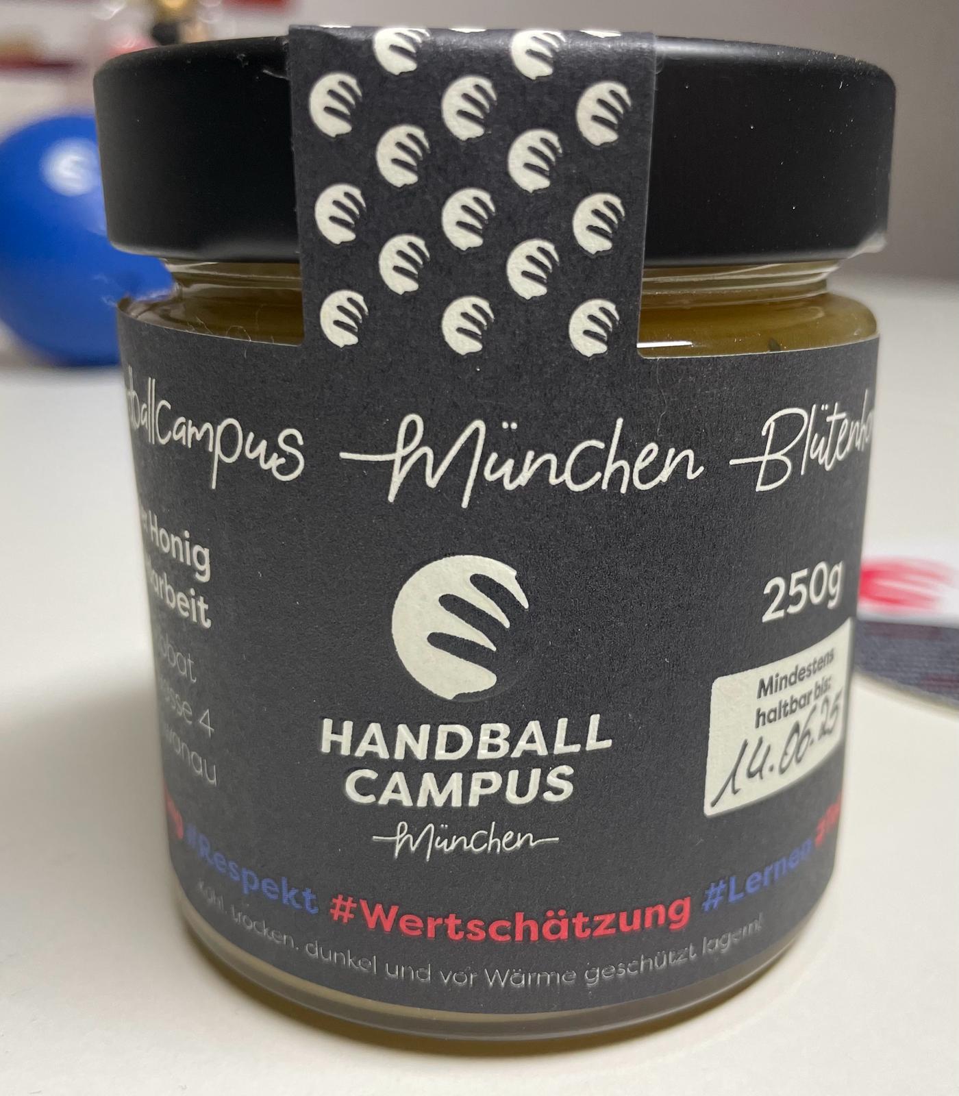 Wir leben die nächste Stufe der Nachhaltigkeit im neuen Jahr und bieten in der ersten Stufe euch exklusiv unseren neuen Handballcampus München Honig aus süddeutscher Handarbeit an. Damit begeistert ihr jeden Kunden wie auch Mitarbeiter und Engagierte im Ehrenamt. Dieses nachhaltige Produkt verkaufen wir für 9,90 Euro pro Glas, zum Aufbau von Ganztagesangeboten ab Schuljahr 2024/2025. Bestellt werden kann der Honig immer in Paketen mit 10 Gläsern.